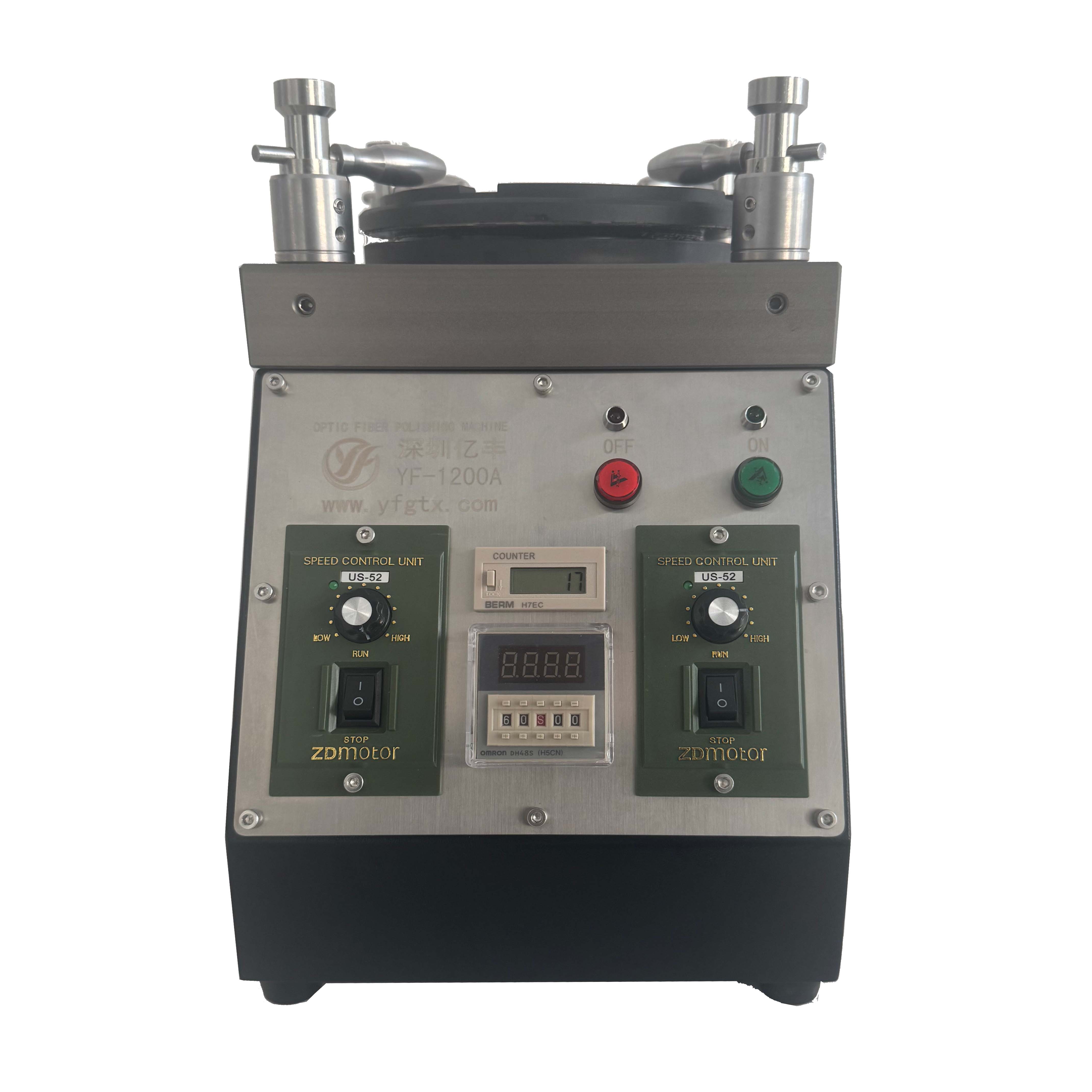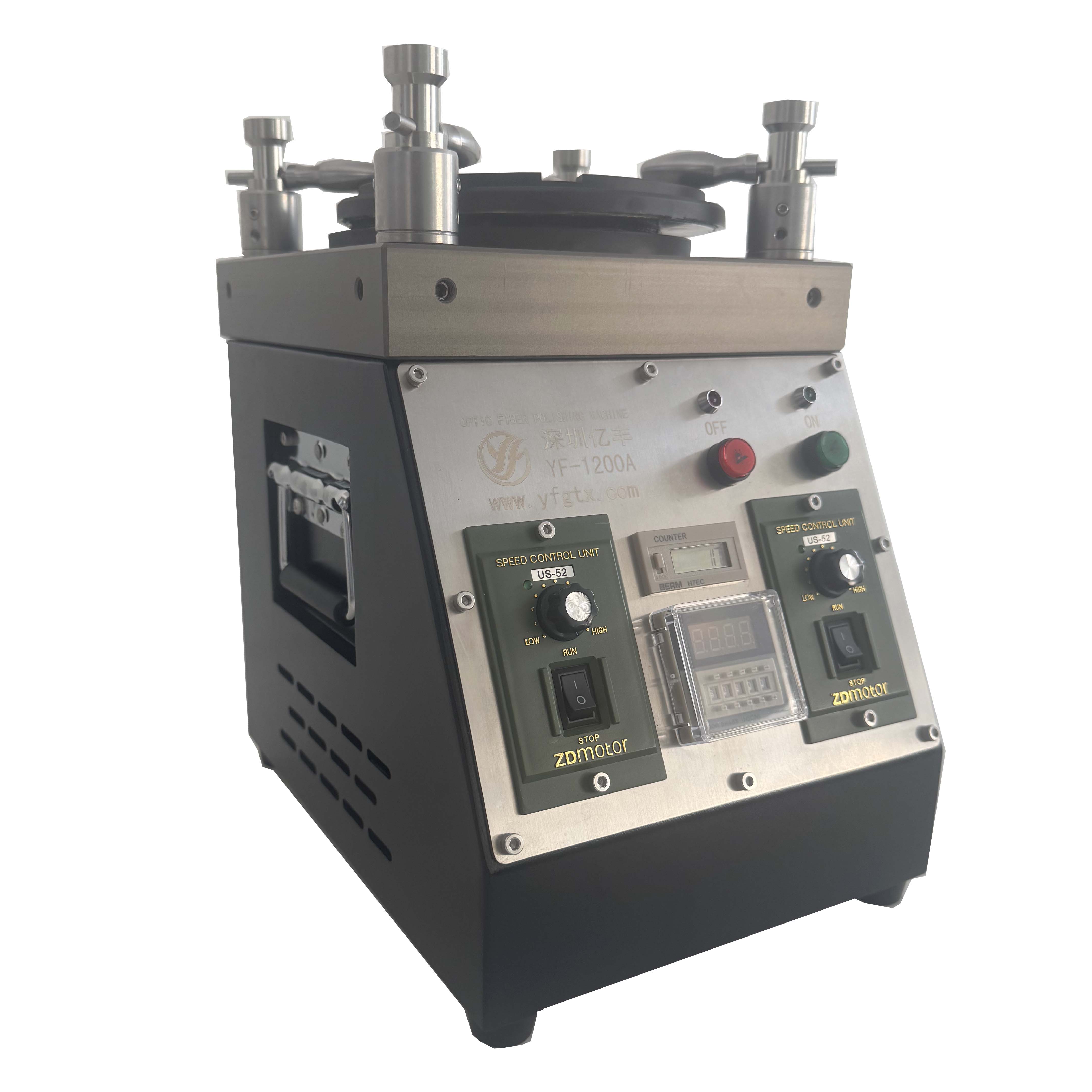 億豐(YF-1200A)研磨機(jī),具有穩(wěn)定壓力,研磨各種型號,可免調(diào)壓力,讓研磨更簡單更穩(wěn)定。采用雙電機(jī)雙調(diào)速設(shè)置,可以更好的設(shè)置兩個電機(jī)的轉(zhuǎn)速比,以達(dá)到更好的研磨軌跡,這樣端面效果更理想。很多研磨遇到劃痕或連成線的小黑點(diǎn),感覺很難解決,而億豐研磨機(jī)微調(diào)公轉(zhuǎn)調(diào)速器,可有效減少這種現(xiàn)象。