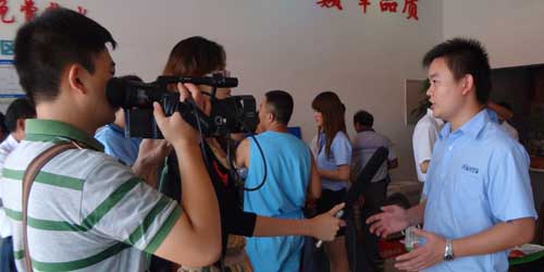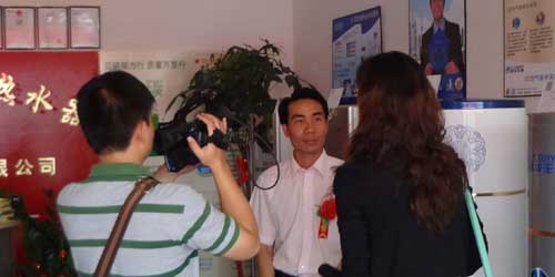 當天,徐州電視臺也趕赴現場對其開業典禮進行報道,并分別采訪了佛山聚陽新能源有限公司江浙區域大區經理鄭亮先生和公司董事長李陳道先生。鄭經理面對記者 采訪時介紹了聚陽王牌3D空氣能發展歷程與品牌文化,詮釋了聚陽公司的經營理念,強調了公司領導對江蘇市場的重視、對牛總的重視和信任,提出徐州是中國歷 史文化名城,淮海經濟區的中心城市,只要徐州我們能夠做強做大,那么整個江蘇省的新老客戶都會給予我們重大信心和動力。同時發表了聚陽王牌空氣源熱泵未來的江 浙市場的發展思路。