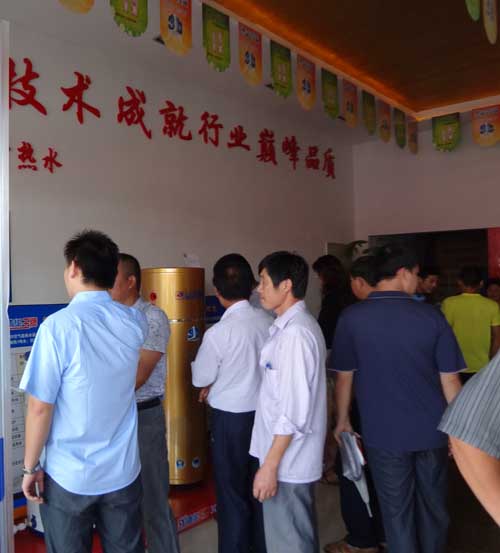 9時準時開始的慶典儀式上,強大的嘉賓陣容甚是搶眼。他們分別是佛山聚陽新能源有限公司董事長李陳道先生、徐州銅山3D熱泵智 能體驗中心總經理牛廣俊先生、徐州鑫發機械有限公司總經理牛廣華先生、徐州浩偉安防器材有限公司總經理牛偉先生、百度徐州區域總監李金龍先生。 代理商牛廣俊先生是聚陽王牌江蘇徐州3D智能體驗中心的負責人,更體驗開業慶典儀式上的主角。牛總在慶典上發表了熱情洋溢的致詞,他提到:“8月28號是 一個平凡的日子,但對于我個人來說確是非比尋常,因為在今天我的3D熱泵智能體驗中心正式隆重開業!體驗中心掛牌成立,掀開了我個人事業嶄新的一頁,而聚陽王牌空氣源熱泵旗艦店落戶徐州,必將揭開整個徐州智能熱水生活的新局面,我將借開業之東風,用成績回報社會,用誠心爭取顧客,用誠信贏取勝利!”體驗中心的開業不僅標志著聚陽王牌空氣能熱水器市場拓展又一次取得了重大勝利,更是空氣能熱水器行業成長腳步的見證。