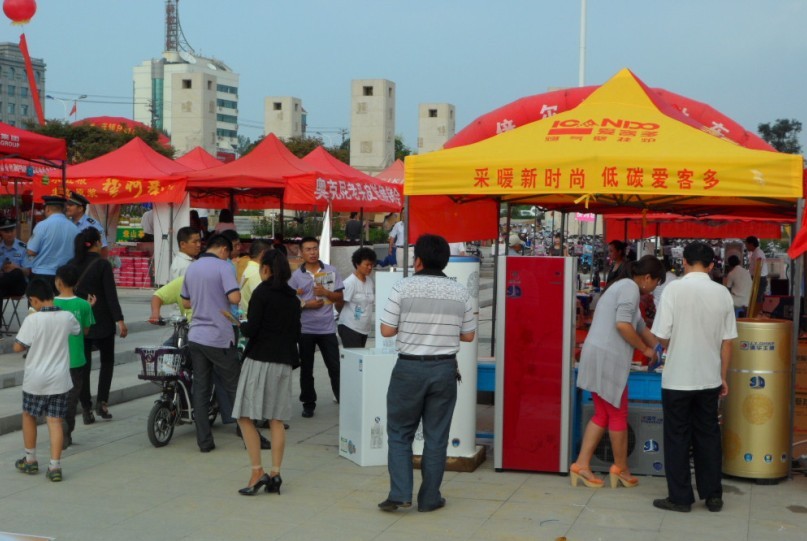 我們聚陽空氣能的山東經銷商爭取在惠民最后時期,讓惠民政策最后一次的讓利給廣大用戶,特意在小區廣場搞一個大型的促銷活動,活動當天擺了我們的產品,現場行人絡繹不絕,漂亮的外觀,良好的質量保證以及售后贏得廣大用戶的認可,當天成績非常不錯,成交了接近20個用戶。