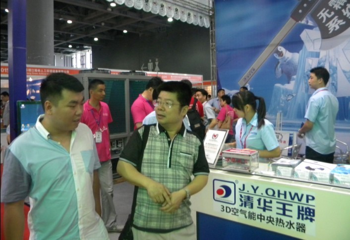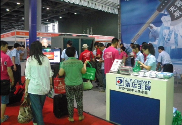 參展的當天,眾多的實力派熱泵廠商參加,他們有用豪華的門面,良好的地理位置,但是,人氣方面,不如我們清華王牌熱鬧,我們的展會已經不算小,但被進來看3D無霜熱泵的參展商擠得水泄不通。