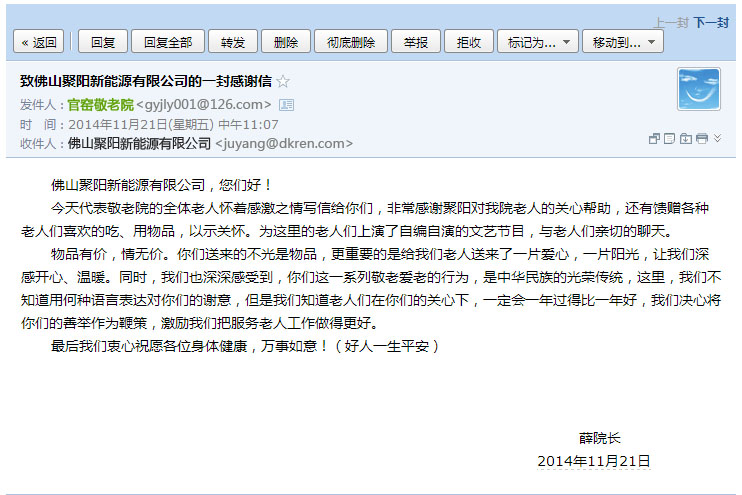 聚陽新能源:關愛老人,暖心傳遞