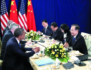 國務院總理溫家寶昨日在金邊會見了美國總統奧巴馬。溫家寶說,中美應通過在貿易、投資、金融、基礎設施等領域開展大規模一攬子合作進一步推動中美經貿關系發展,保持和加強在重大國際和地區事務中的溝通與協調,特別是與其他亞太國家共同努力,維護和促...