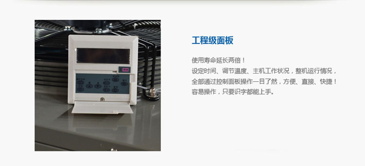 7、機組有較完備的安全保護功能:機組的控制開關和保護包括:相序保護、防凍保護,壓縮機熱過載、過熱保護,軸流風機熱過載、頻繁啟動