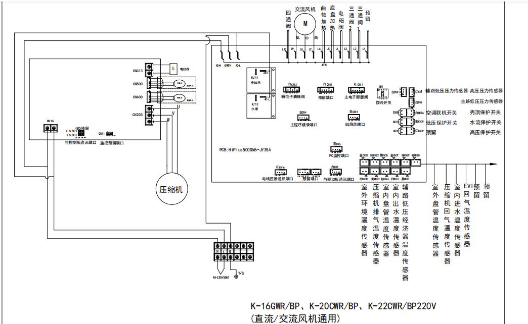 聚陽采暖空氣能5P6P8P220V接線圖(交直流電機通用)(舊款5000RM)-模型