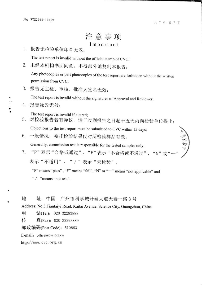 國家日用電器質量監督檢驗中心檢出具的檢驗合格報告